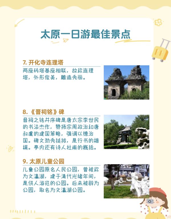 这就是太原一日游的最佳景点——这座城市的街头巷尾、公园夜市、历史遗迹和生活气息。在这里,你可以找到生活的美好,可以感受到旅行的乐趣。让我们一起在太原的这一日游中,体验生活的美好,感受旅行的魅力吧!