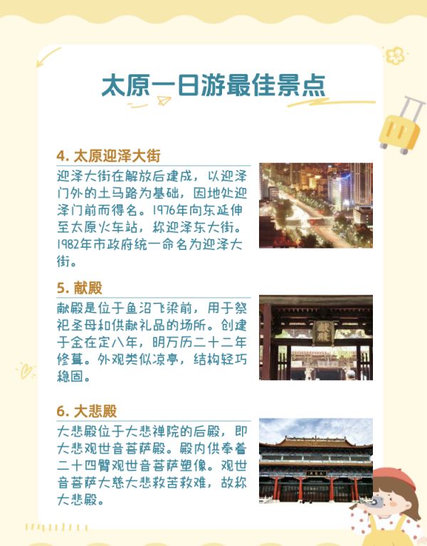 在太原这座历史悠久的城市度过一日,你会发现这座城市的独特魅力不仅仅在于它的历史,还在于它的生活气息,它的美食,以及它的人民。这一天的旅程,将带你领略太原的古今风情,让你感受到这座城市的鲜活与魅力。