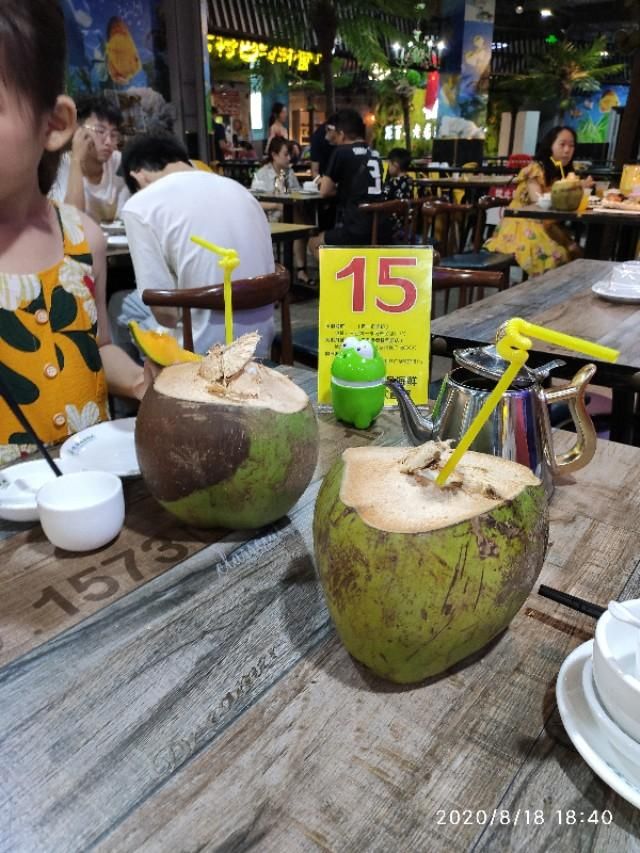 说一下吃吧,第一天吃的蛙来哒,属于商圈的连锁,都差不多,第二天亚龙湾奥特莱斯的阿浪海鲜套餐,388套餐,我稍微吐槽一下吧,龙虾不算大,扇贝属于开玩笑的那种,绝对坑人,炒的类似蛤蜊的也是不肥,鲍鱼在青岛差不多市场上卖三四块钱一个的那种,其实也没报多大希望会很好吃,但是没想到会这么差。阿浪海鲜这个店就在一个海鲜市场里,自选海鲜看价格也不便宜,椰子十五一个不论大小,芒果十五一个,肯定是买贵了,但是不想到处去问了。吃了一次文昌鸡,感觉没有滋味,和一般都白斩鸡没啥区别。最后亚龙湾吃的海底捞是本次旅游吃的最饱的一次。