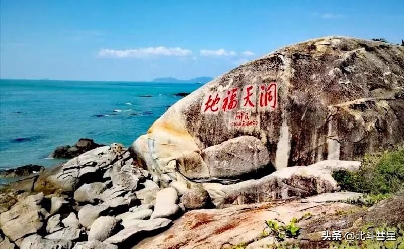 小洞天在海边,大洞天在山上。登上金顶,视野开阔,海山美景一览无余,那是一种震撼的风情。山中有清泉和多样的珍稀动植物,山下海岸线曲折蜿蜒,由于海浪的冲刷,奇峰异石遍布,形态各异、鬼斧神工。