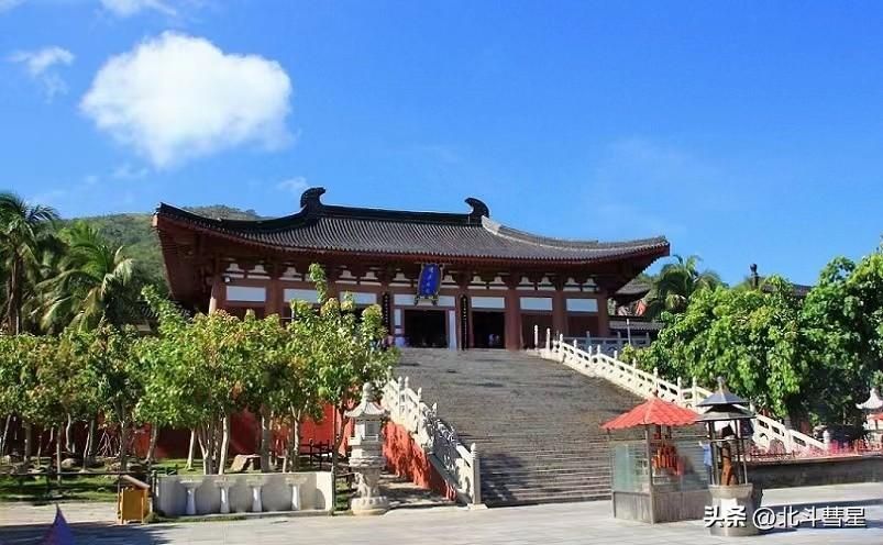 南山,古称鳌山,为五指山余脉,山势逶迤,苍松翠柏,前临碧波,空气清新,是中国最南端的一座山,历来被佛家称为福泽之地,被誉为南方的佛教圣地。