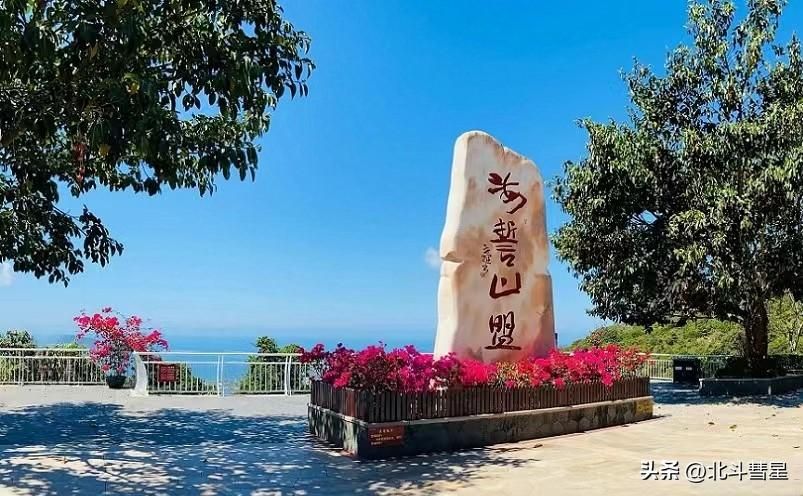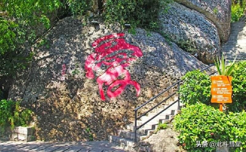 在凤凰岭山巅,有一块巨大的石碑屹立于此,一面刻有“海誓山盟”,另一面刻有北纬18度,没错,这是一个象征着爱的纬度。此外,这里还有月老泉、情侣树、来凤台、水晶圣殿等象征爱情的景观,可谓名副其实的爱情圣山。