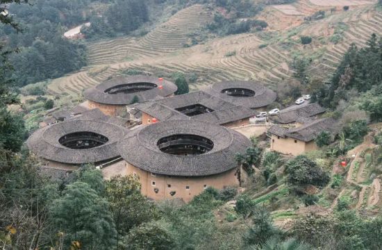 永定土楼,位于中国东南沿海的福建省龙岩市,是世界上独一无二的神奇的山区民居建筑。它历史悠久、风格独特,规模宏大、结构精巧。