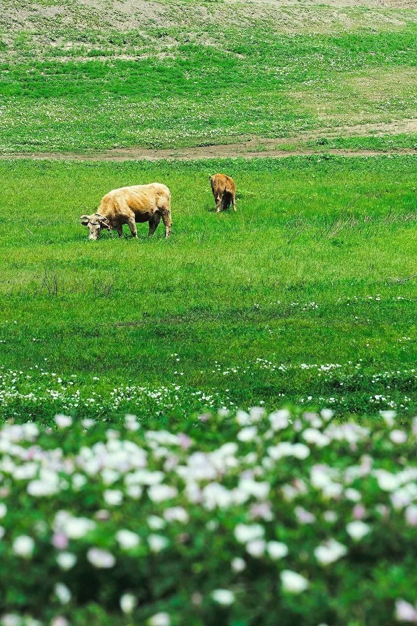 滩涂上遍地嫩绿色的野草肆意蔓延