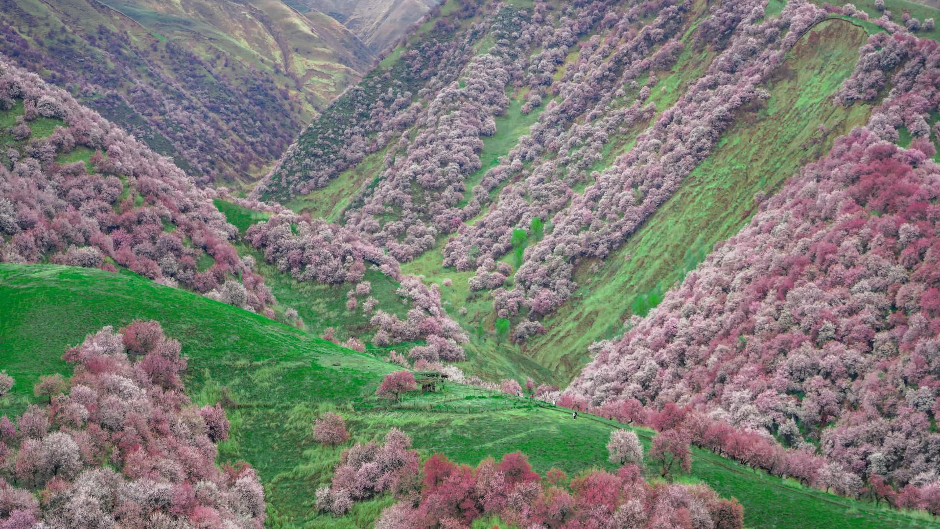 时间:6-8月;5月底那拉提的草原就绿了,野花破土而出,直到8月初,草原开始枯萎,风姿不再。