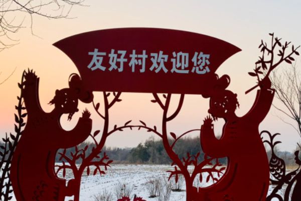 友好村坐落在长春市净月高新技术产业开发区玉潭镇,位于189乡道沿线,距离长春市区50分钟车程左右,导航目的地设为友好村。村庄坐落在大顶子山里,自驾在起伏的山间乡道中,村庄、农田、森林交杂错落,既有烟火气,又有隐居山间的闲适悠然。
