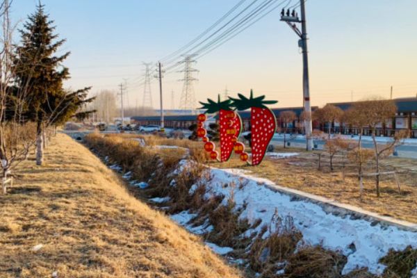 从大顶子山继续沿着长清公路向双阳区行驶大概十几分钟就会到达奢岭镇,有一个草莓小镇,号称城里人的草莓基地。路两边随处可见种植草莓的塑料大棚,隔一段就会出现一个草莓种植园的标示牌,邀请客户前往采摘。