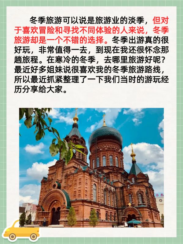 冬季旅游可以说是旅游业的淡季,但对于喜欢冒险和寻找不同体验的人来说,冬季旅游却是一个不错的选择。冬季出游真的很好玩,非常值得一去,到现在我还很怀念那趟旅程。在寒冷的冬季,去哪里旅游好呢?最近好多姐妹说很喜欢我的冬季旅游路线,所以最近抓紧整理了一下我们当时的游玩经历分享给大家。