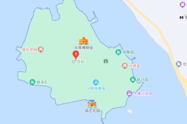 鼓浪屿是厦门西南禺的一座小岛,面积1、77平方千米,以700米宽的海峡与市区相隔。岛上四季如春,岛上树木丛生,丘陵起伏,有海上花园的美称,是闻名中外的旅游胜地,因为岛上有一中空巨石,海浪拍击声如鼓鸣而得名。岛上最高处叫日光岩,附近有民族英雄郑成功当年训练水师的水操台遗址。海边有菽庄花园,花园旁边的金色沙滩,为天然海滨浴场。
