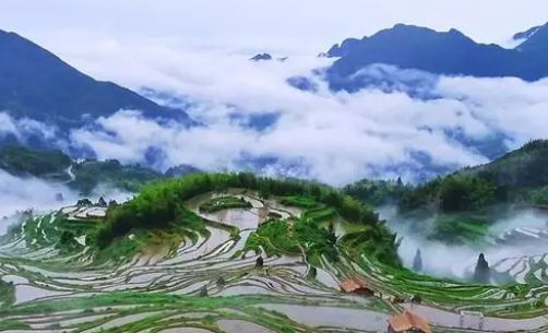 4、云和梯田景区,华东最大的梯田区。位于丽水市云和县崇头镇。跨越高山、丘陵、谷地3个景观带,最多有700多层,被誉为中国最美梯田之一,其中白银谷游览区最受游客和摄影爱好者青睐。