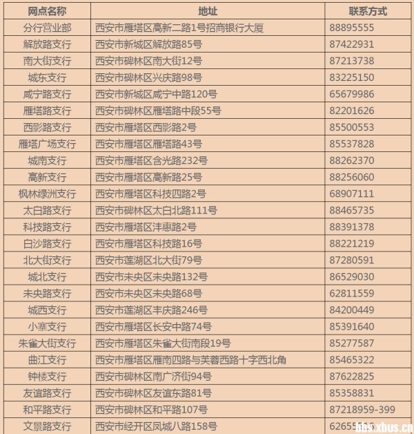 50 小寨支行 西安市小寨东路196号国贸一层 85259975