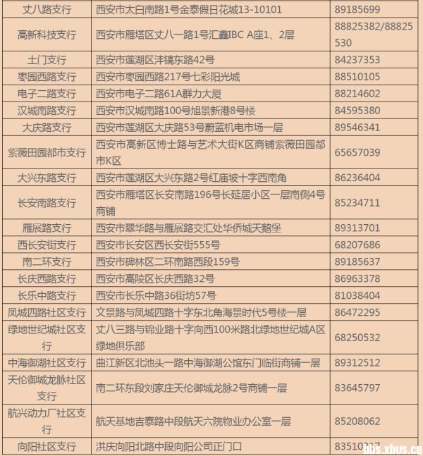 189 航天中路支行 西安市长安区吉泰路中段 85208009