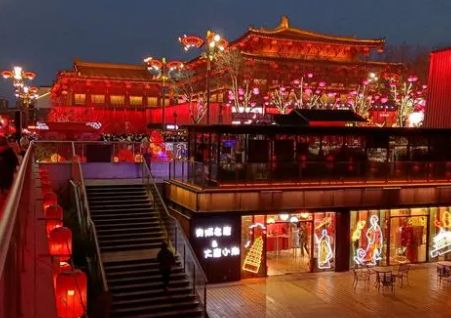 大雁塔·大唐芙蓉园景区是西安夜晚好玩的地方。大雁塔脚下的大唐不夜城,是一条雕塑景观步行街,吃喝玩乐应有尽有,历史与科技、唐风与现代元素结合,让西安回归大唐盛景。