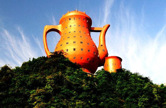 天下第一壶茶博览园位于贵州遵义湄潭县城中心火焰山山顶,是集茶文化博物馆、茶文化特色旅游、茶文化特色酒店、茶知识科普、茶文化休闲、茶产品展示、书画欣赏及水上娱乐等为一体的综合型茶文化主题公园。