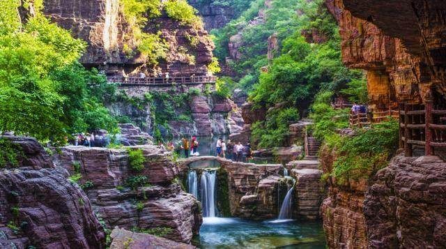 河南游玩的第一选择,大部分人都会说是云台山,它已经同少林寺、龙门石窟一起,成为了河南旅游的名片。这里不但景色秀丽,而且面积巨大,带上一家人待上两天是没有问题的。很多人担心在这里会被晒到,其实大可不必,比如在这里的红石峡,峡谷流水不断,而且植被茂密,遮阴处很多,十分凉爽,这个季节的云台山也最为迷人。