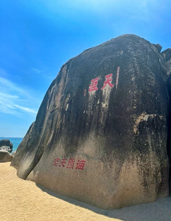 我最喜欢的是天涯石和海角石,这是一对相距约100米的巨石,上面分别刻着“天涯”和“海角”两个大字,象征着恋人的思念和诀别,也象征着海南的边陲和孤独,很有感触。