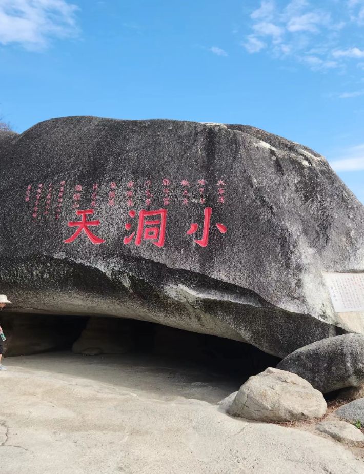 小洞天是一个半封闭的海湾,洞口很小,只有一条狭窄的水道通向外海,洞内有一片碧绿的海水,叫做仙人浴盆,据说是观音菩萨的洗浴之地。