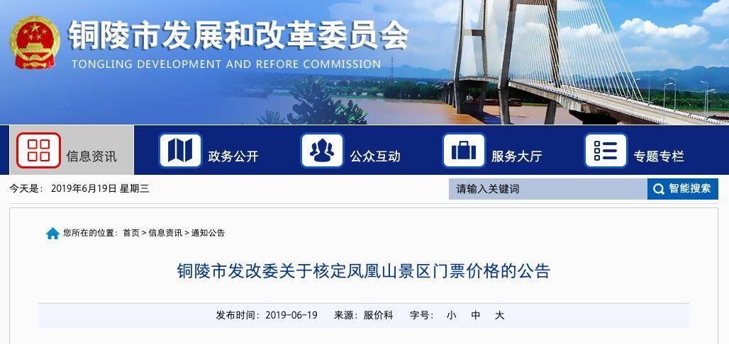 铜陵市发改委今天发布关于核定凤凰山景区门票价格的公告。市发改委在充分考虑听证会参加人意见的基础上,进一步完善了凤凰山景区门票定价方案,并报经市政府批准同意,定价决定是:旺季(每年3月份至10月份)票价为70元/人次,淡季(每年1月份、2月份、11月份、12月份)票价为35元/人次,凤凰山景区门票价格在景区内公布半年后,从2020年元月1日起执行。
