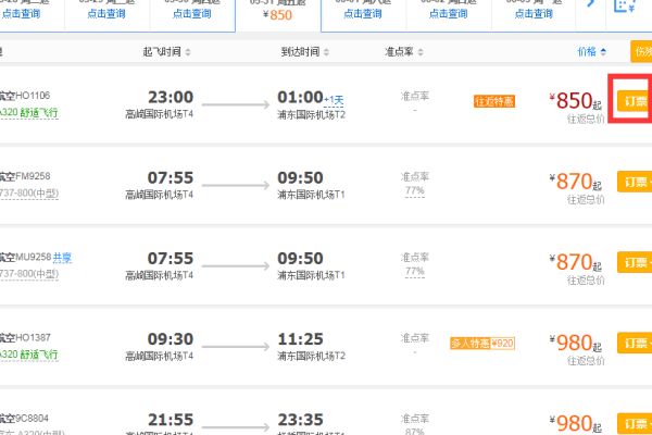 9、然后找到自己想要的预订航班,选择订票,如图下所示;