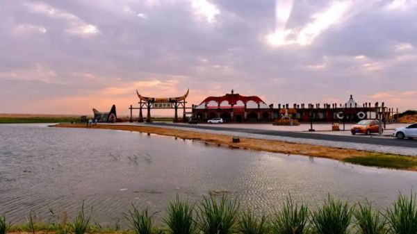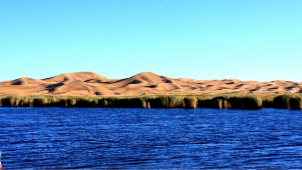 推荐理由:湖水清澈、明净,四周是浩瀚的沙漠,沙涛滚滚,景象奇伟壮观