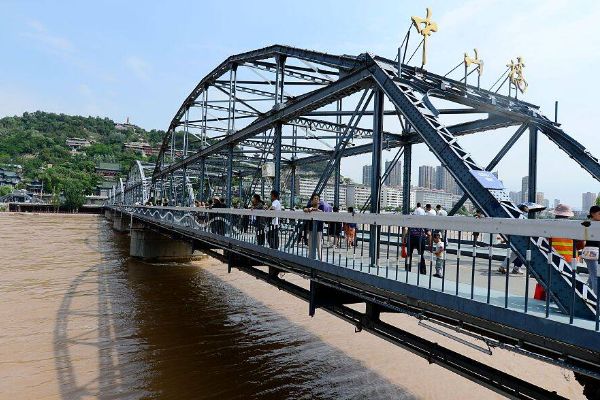 黄河铁桥又名中山桥,位于城关区,是兰州最重要的地标建筑之一,也是游客到兰州游玩一定要去的地方。铁桥长两百多米,宽约有七八米,保持了一百多年前修建时的黑色铁架桥身,十分古朴。在百年来的修缮过程中,桥身上还架起了5座大铁拱,气势美观。铁桥南侧桥头处,有金色的“中山桥”三个大字,还有一块刻有“黄河第一桥”的古老石碑,每天都有很多游客到此合影,作为来过兰州的留念。这座铁桥修建于清朝末年,是当时黄河上架起的第一座常年通行桥,也被誉为“天下第一桥”。