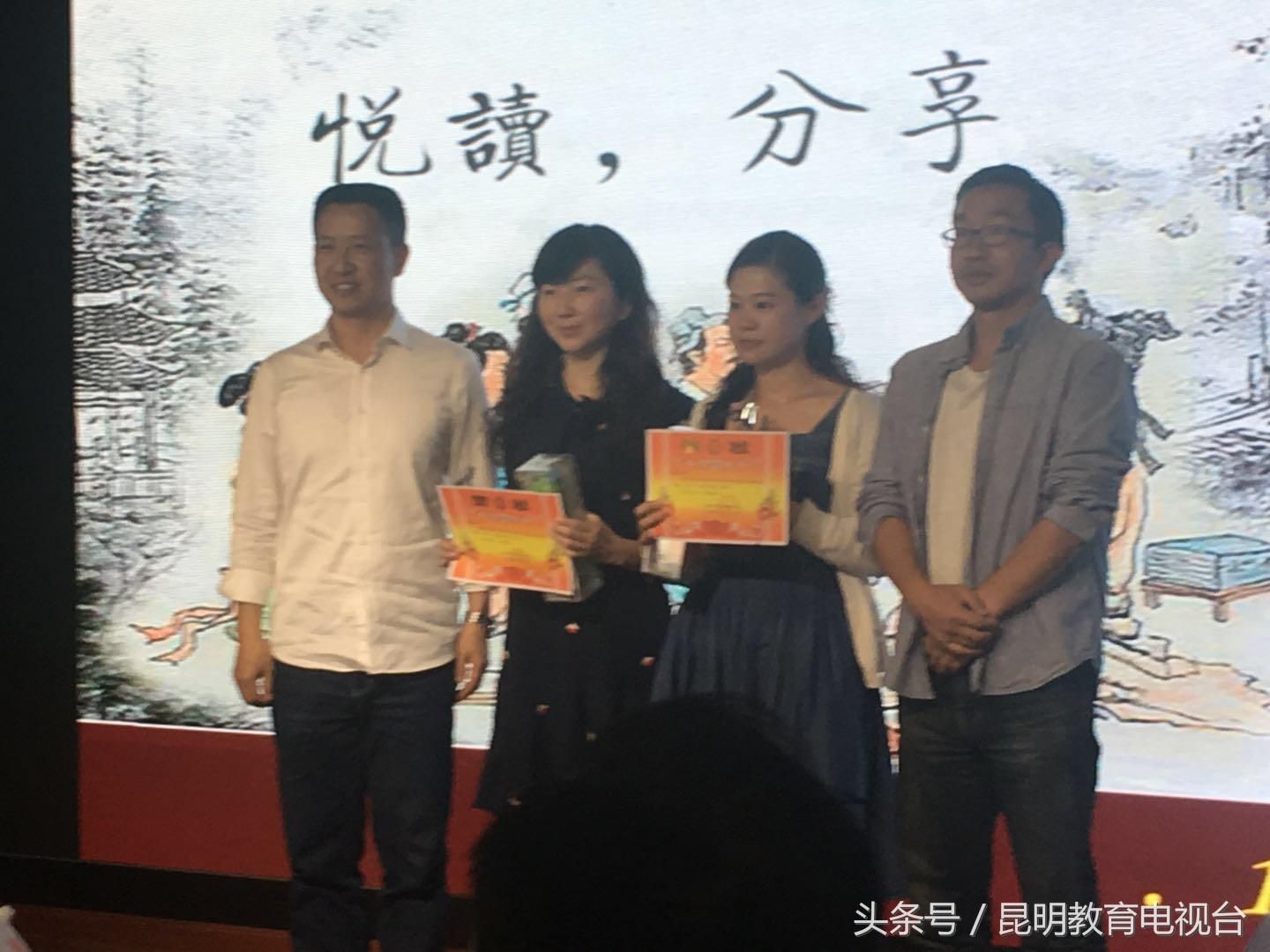 在音乐声中,为时两个半小时的读书分享会结束了。经过评选,10名分享者分别获得了一、二、三等奖,同时还评选出了优秀组织奖。