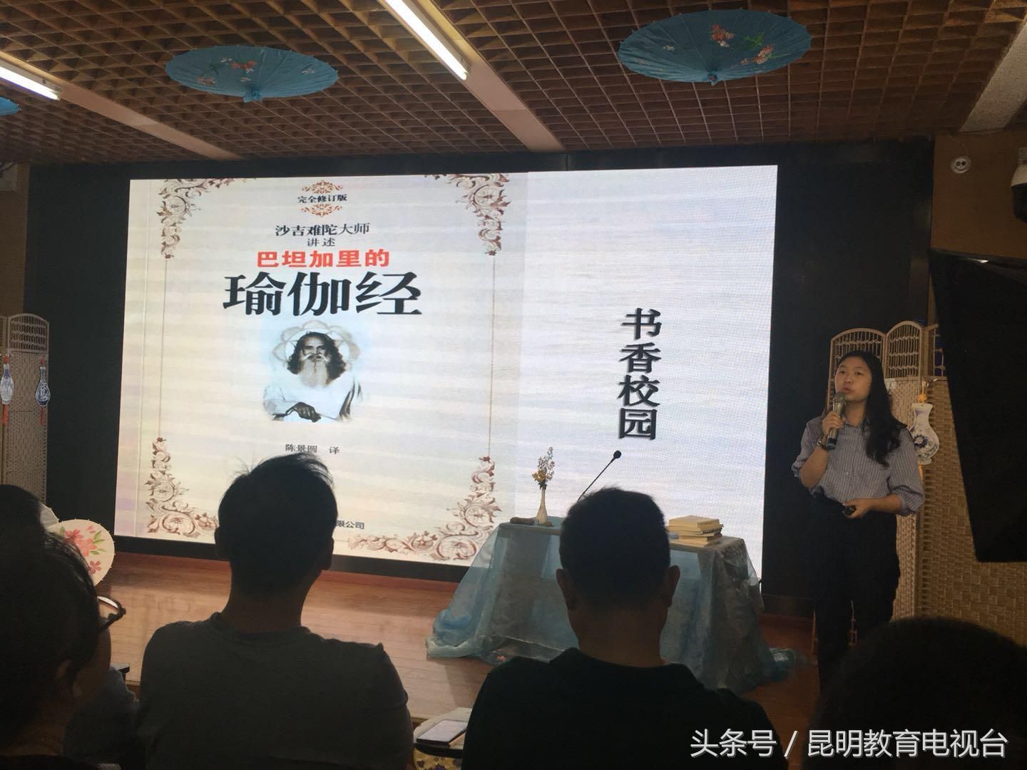 老师们在音乐与书香中畅聊自己喜爱的书籍。从《假如给我三天光明》到《一个人的朝圣》,前者讲述了一个生活在黑暗中却又给人类带来光明的女性——海伦・凯勒,她全靠一颗不屈不挠的心在黑暗中找到了光明,最后又把慈爱的双手感恩世界。而后者则讲述了一个60岁普通的英国老头儿哈罗德,为了坚持一个信念走了长达87天1009公里的“朝圣之路”,最后把爱与希望带给了别人的故事。大家从中体会到了生命的不易,面对挑战,面对未知,面对质疑,还有面对自己的灵魂,我们唯有努力,永不放弃,终会创造奇迹。 从《状元媒》到《四朝代》都讲述了家族史,大家还沉浸在宋朝京城旗人后代色彩斑斓的生活和不同人物的跌宕命运之中时,又被分享者把大家带到了一个泰国封建官宦家族的盛衰故事里,人物命运的曲折多变、宫廷内部的变迁,形象生动的记录了泰国半个世纪的历史演变历程。在大家的心被这一系列书籍撩拨得火热的时候,《瑜伽经》与《小王子》的及时出现给大家带来了一缕清凉,抚平了大家心中泛起的波澜,而随后一本《诸子百家》又将大家拖入了历史的长河中,分享者以法家为例,讲述了当代中国法律的诞生就是受到法家思想的影响,法家思想对于一个国家的政治、文化、道德方面的约束以及对现代法制的深远影响。最后,一本云南本土作家于坚的《昆明记》,由分享者把大家的思绪拉回到了现实生活中,分享者把书中作者拍摄的昆明老照片呈现出来时,大家倍感亲切,老照片中充满了苍凉,而新的照片在活力之外也透出一种城市特有的疲惫,书中文字与照片相结合,将“昆明”这座城市体现得淋漓尽致,埋藏着作者对“故乡”变迁的千思万绪,分享者也从中带给了大家一种新的体悟,让大家感慨万千。