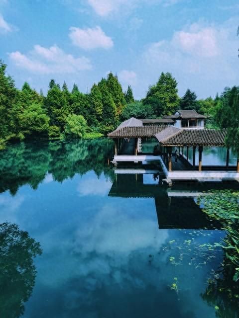 早晨,我们来到了孤山公园,这是观赏西湖日出的绝佳地点。清晨的孤山路上,清幽静谧,沿途可以看到最美的弯道。走过孤山路,我们来到了绿水芙蕖,这是一个景色宜人的小公园,大家都在井然有序地拍照,很容易就能拍到亭子的空景。