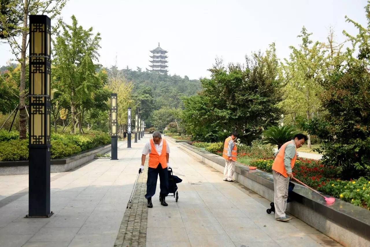 9月26日上午,张公山公园景观大道上,物业保洁正在对公园进行大扫除,不放过任何一个角落,用整洁的面貌迎接国庆黄金周八方游客。