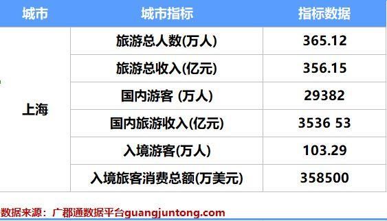 综上所述,2021年度的数据清晰地显示了上海旅游业对城市经济繁荣的积极影响。上海的旅游业不仅为城市创造了丰富多彩的文化和娱乐体验,还为城市的就业和经济增长注入了新的活力。(数据来源于广郡通数据平台guangjuntong.com)