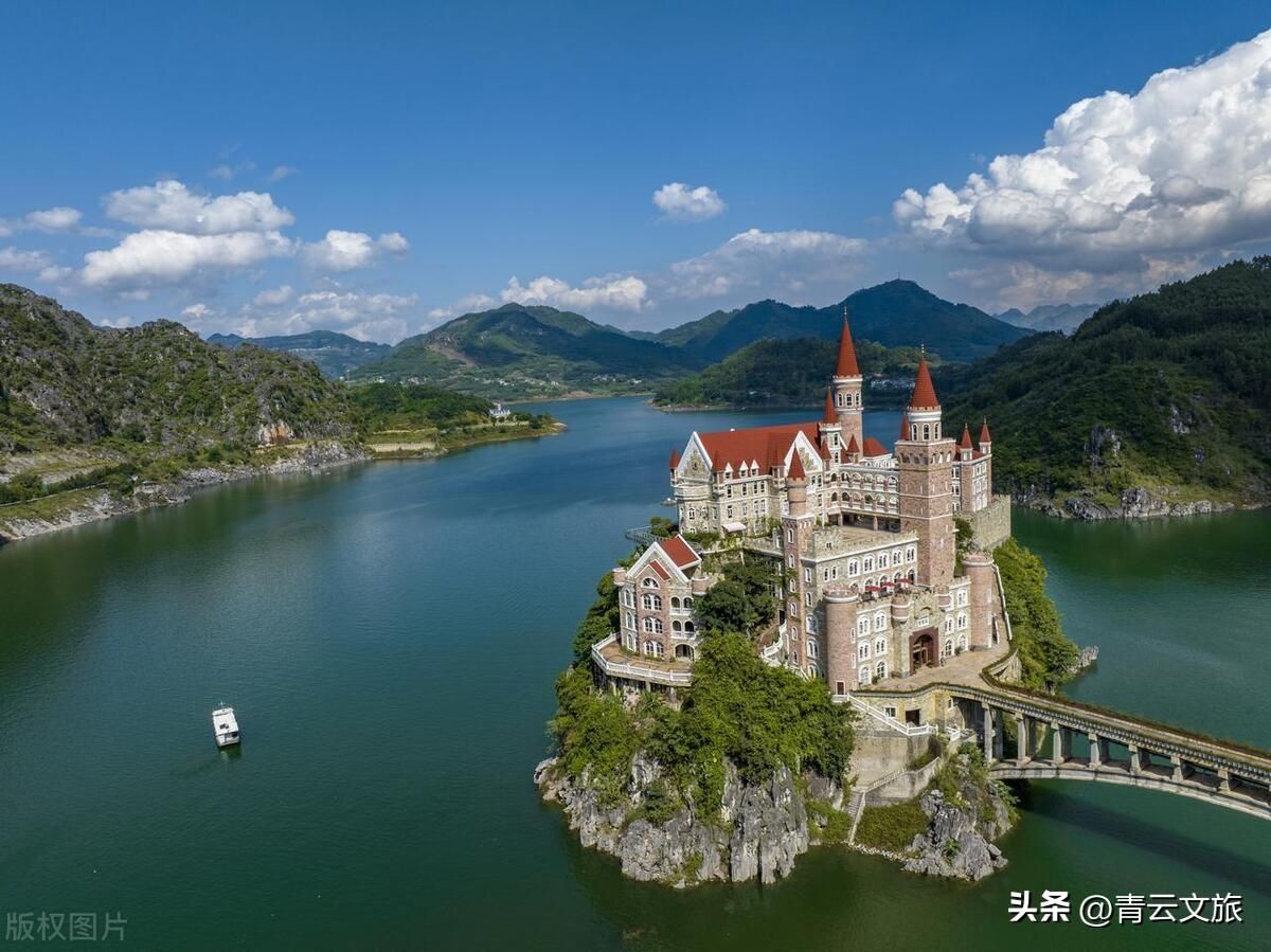万峰湖被峰林包围,湖水清澈透明。你可以乘坐游船观水上峰林,呼吸新鲜空气,欣赏碧绿的湖水和远处苍翠的山峦,这简直就像一幅绝美的山水画卷。走进万峰湖的深处,你还可以看到隐藏在群峰中孤独的城堡——吉隆堡,白墙红瓦的欧式城堡在青山碧水中尤为瞩目,看起来好神秘哦!