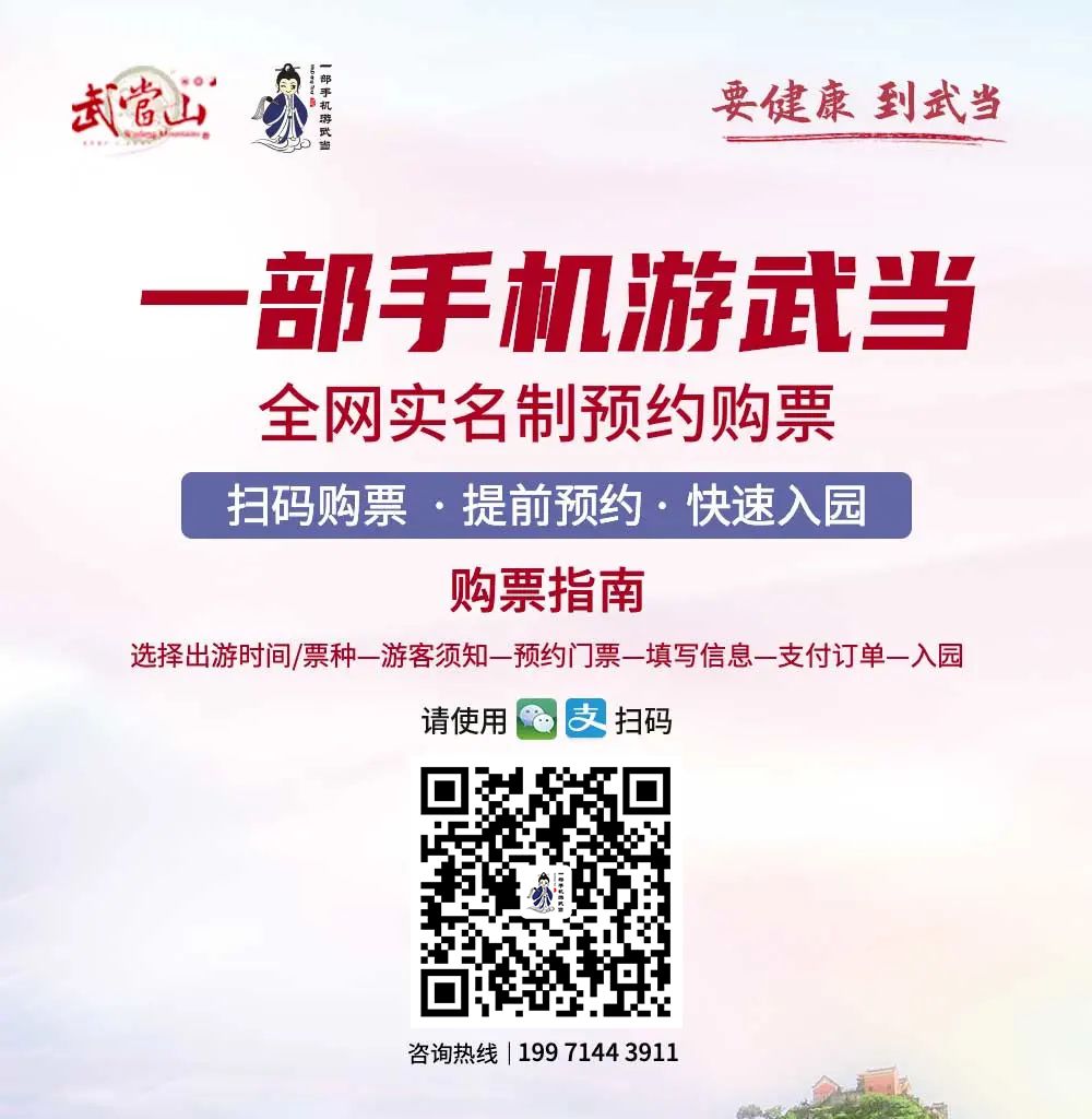 武当山景区现已全面实行全网实名制预约购票,广大游客朋友应至少提前一天在各大网络平台(携程网、美团网或微信/支付宝小程序搜索“一部手机游武当”)进行实名制预约购票,入园时持本人身份证进行人证比对、人脸比对成功后即可乘坐观光车进入景区(一人一证一检票)。