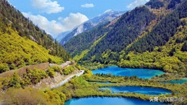 1.九寨沟。九寨沟在四川省南坪县城西45千米处,与甘肃省相接,因有九座藏族村居于其中而得名。九寨沟呈人字形,主沟叫树正沟,呈南北延伸,南高北低,向北开口,其上有两条支沟,东名则查哇沟,西名日则沟。沟谷总长约50千米。其自然风景点都集中在沟两侧。