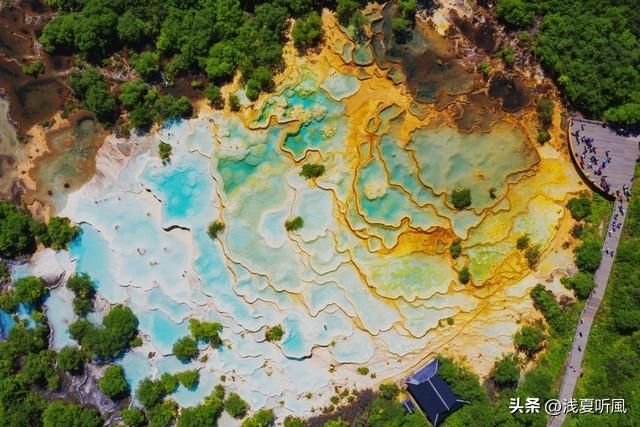 2.黄龙。黄龙风景名胜区位于四川省阿坝藏族羌族自治州松潘县境内。海拔在3000米以上,是中国最高的风景名胜区之一。风景区由黄龙景区和牟尼沟景区两部分组成。地表钙华是黄龙景观的最大特色。面积700平方公里。主要景观集中于长约3.6公里的黄龙沟,沟内遍布碳酸钙华沉积,并呈梯田状排列,仿佛是一条金色巨龙,并伴有雪山、瀑布、原始森林、峡谷等景观。黄龙风景名胜区既以独特的岩溶景观著称于世,也以丰富的动植物资源享誉人间。从黄龙沟底部(海拔2000米)到山顶(海拔3800米)依次出现亚热带常绿与落叶阔叶混交林、针叶阔叶混交林、亚高山针叶林、高山灌丛草甸等。包括大熊猫、金丝猴在内的10余种珍贵动物倘佯其间,使黄龙景区的特殊岩溶地貌与珍稀动植物资源相互交织,浑然天成。以其雄、峻、奇、野风景特色,享有“世界奇观”、“人间瑶池”的美誉。