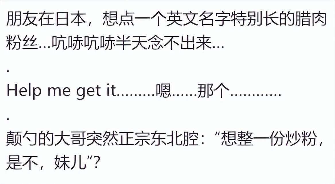小伙儿你也东北的啊?但是叔叔阿姨怎么知道你是东北人呢?难道英语也带东北味儿?
