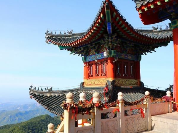 山茱萸峰,俗称小北顶,又名福普山,因其外形酷似一口倒放的大锅而得名。海拔1297.6米,峰顶有真武大庙、天桥、天梯。王维,唐代诗人,《九月九日忆山东兄弟》:;一个人在异乡,人生地不熟。每次你拜访你的家人,你都会认识你的兄弟当我们爬到山顶时,会有一个人因为你而失踪。也就是说,我在这个峰值感受到了。
