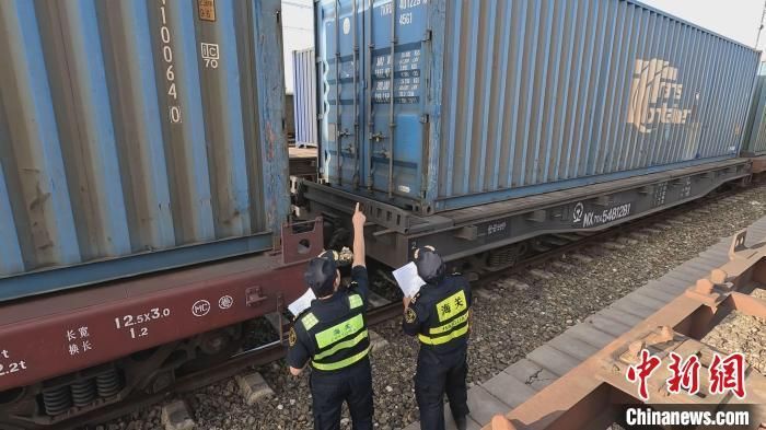 霍尔果斯海关检查班列。李明 摄