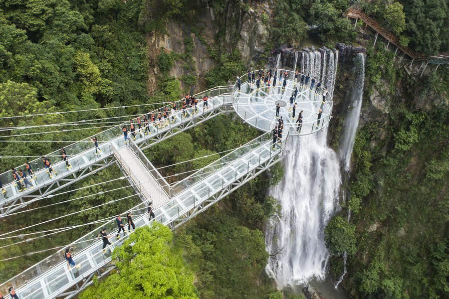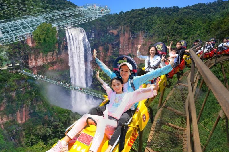 最好是先去看玻璃桥,瀑布,通天神掌,再坐悬崖飞车到漂流地点。不去就直接进去漂流。