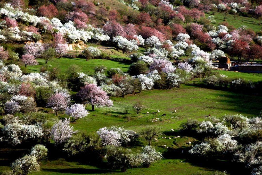 杏树林绵延十几公里,或雪白或粉红,几公里之外,都能闻到清新的香味。