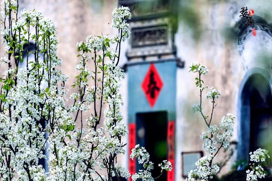 四月,婺源不只有漫山遍野的金黄,掩映着的是白墙灰瓦的徽派建筑和或粉或白的桃花梨树,静谧而美好。