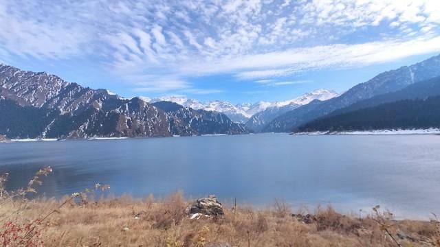 乌鲁木齐天山天池位于新疆维吾尔自治区乌鲁木齐市,是天山著名的旅游景点。冬季的天池,雪峰耸立,景色壮丽。游客可以在这里观赏到独特的自然风光,如雪峰、冰川、瀑布等。