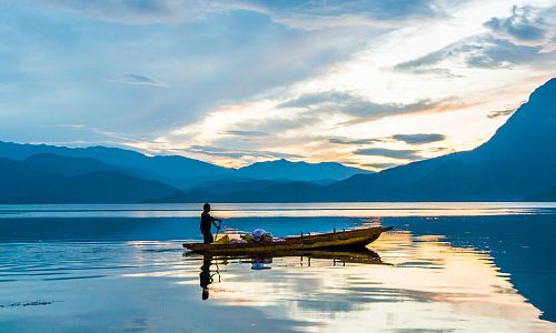 泸沽湖为川滇两省界湖,为四川云南两省共有,湖周边主要居住着摩梭人、彝族和普米族。湖水清澈蔚蓝,是云南海拔最高的湖泊,也是中国最深的淡水湖之一,充满了神秘的色彩。景区四周崇山峻岭,一年有三个月以上积雪期,森林资源丰富,被人们誉为“蓬莱仙境”。