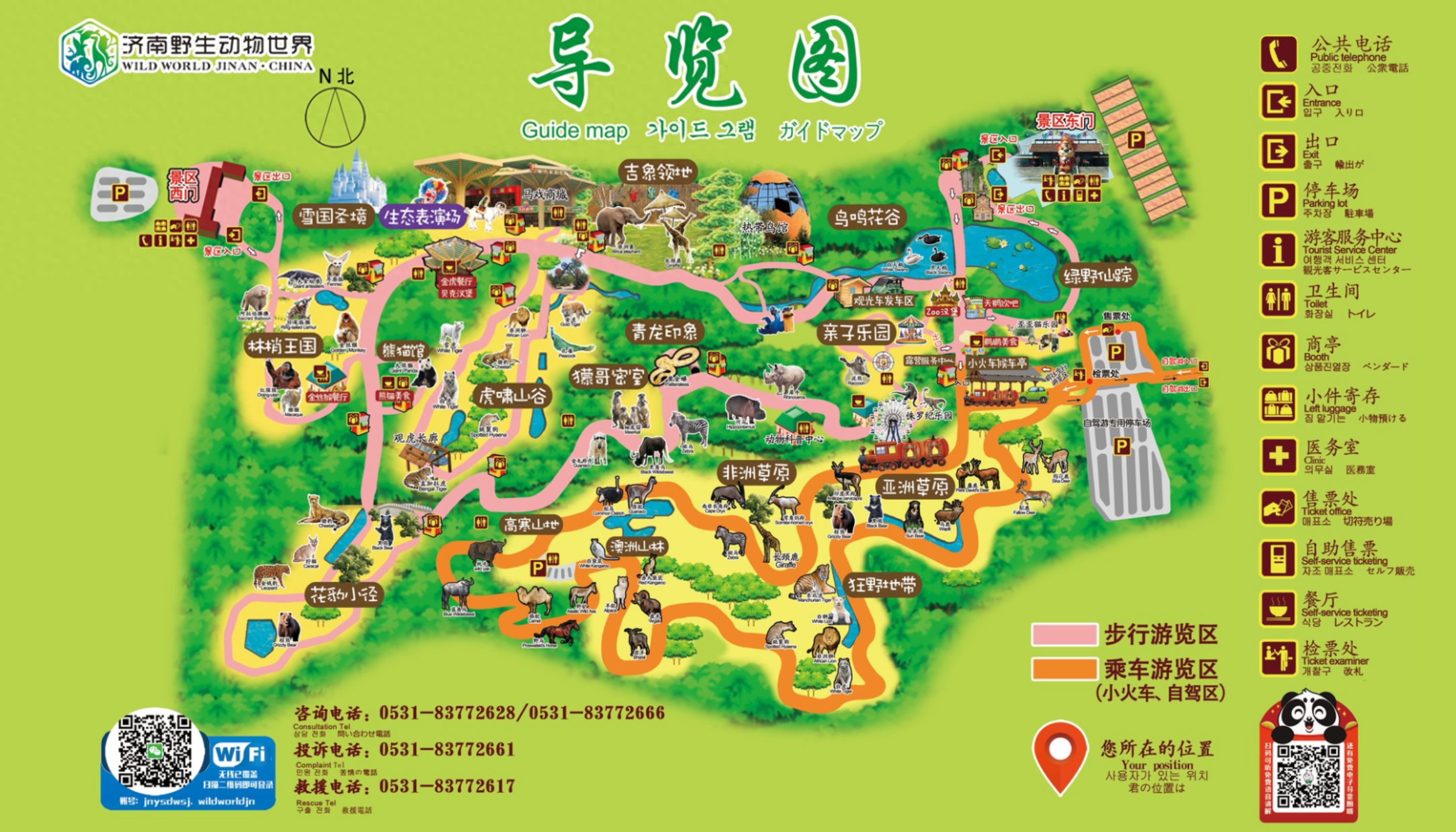 步行区比较大,有老虎、狮子、大象、长颈鹿、熊猫、孔雀、鹦鹉等等动物。如果孩子比较小的话,一定要带个车子,方便推孩子。这片区域如果全逛遍,需要3到5个小时,确实比较累。也有游览车可以坐,需要花钱。建议去的时候步行去,游览完了,可以坐车回来。