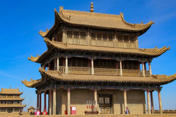 嘉峪关,号称“天下第一雄关”。位于甘肃省嘉峪关市西5千米处最狭窄的山谷中部,城关两侧的城墙横穿沙漠戈壁,北连黑山悬壁长城,南接天下第一墩,是明长城最西端的关口,历史上曾被称为河西咽喉,因地势险要,建筑雄伟,有连陲锁钥之称。嘉峪关是古代“丝绸之路”的交通要塞,中国长城三大奇观之一(东有山海关、中有镇北台、西有嘉峪关)。