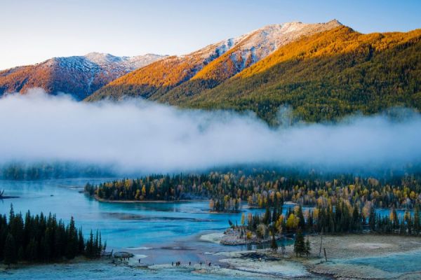 喀纳斯景区主要位于新疆阿勒泰境内,整个景区主要由大小55个景点组成,其中涵盖于喀纳斯湖、卧龙湾、泰加林廊道等主要景点。