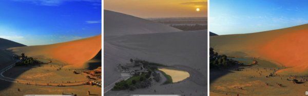 ⑦鸣沙山月牙泉。鸣沙山月牙泉位于甘肃省敦煌市西南5公里处,是一处神奇的沙漠景观,也是中国四大名沙之一。