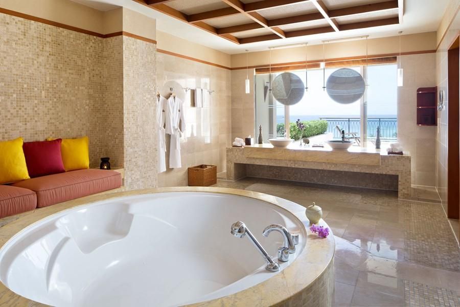 礁湖泳池的设计,如珊瑚般千姿百态的不规则形状。目的是留出许多边角区域,供互不相识的客人分别休憩,保护隐私。泳池也划分出儿童、成人和恒温区域。