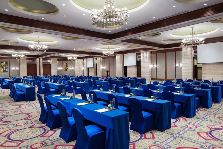 1550平方米的会议场地。其中包括一个830平方米的大宴会厅,6个分别为70平方米的多能听,以及一个300平方米的户外多功能厅(佰草厅)。