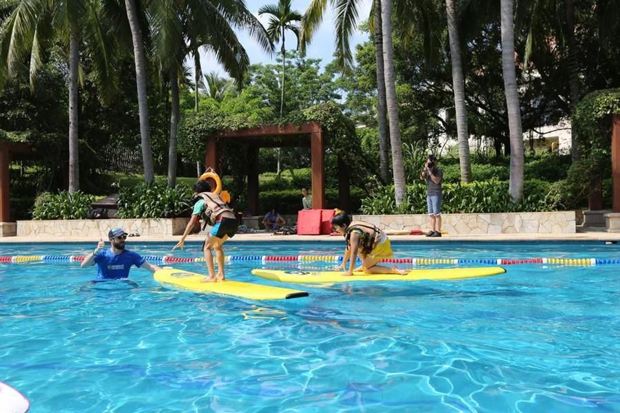 泳池吧为嬉水的客人提供鸡尾酒和西式简餐。