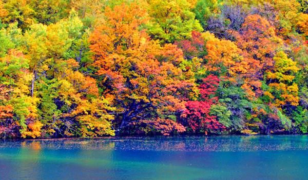 九寨沟气候温和,日照充足,一年四季皆适宜旅游,尤其是金秋十月是最佳旅游时间,此时的九寨沟色彩缤纷,翠绿、金黄、火红……倒映在湖泊、水潭里,湖光山色,煞是迷人。
